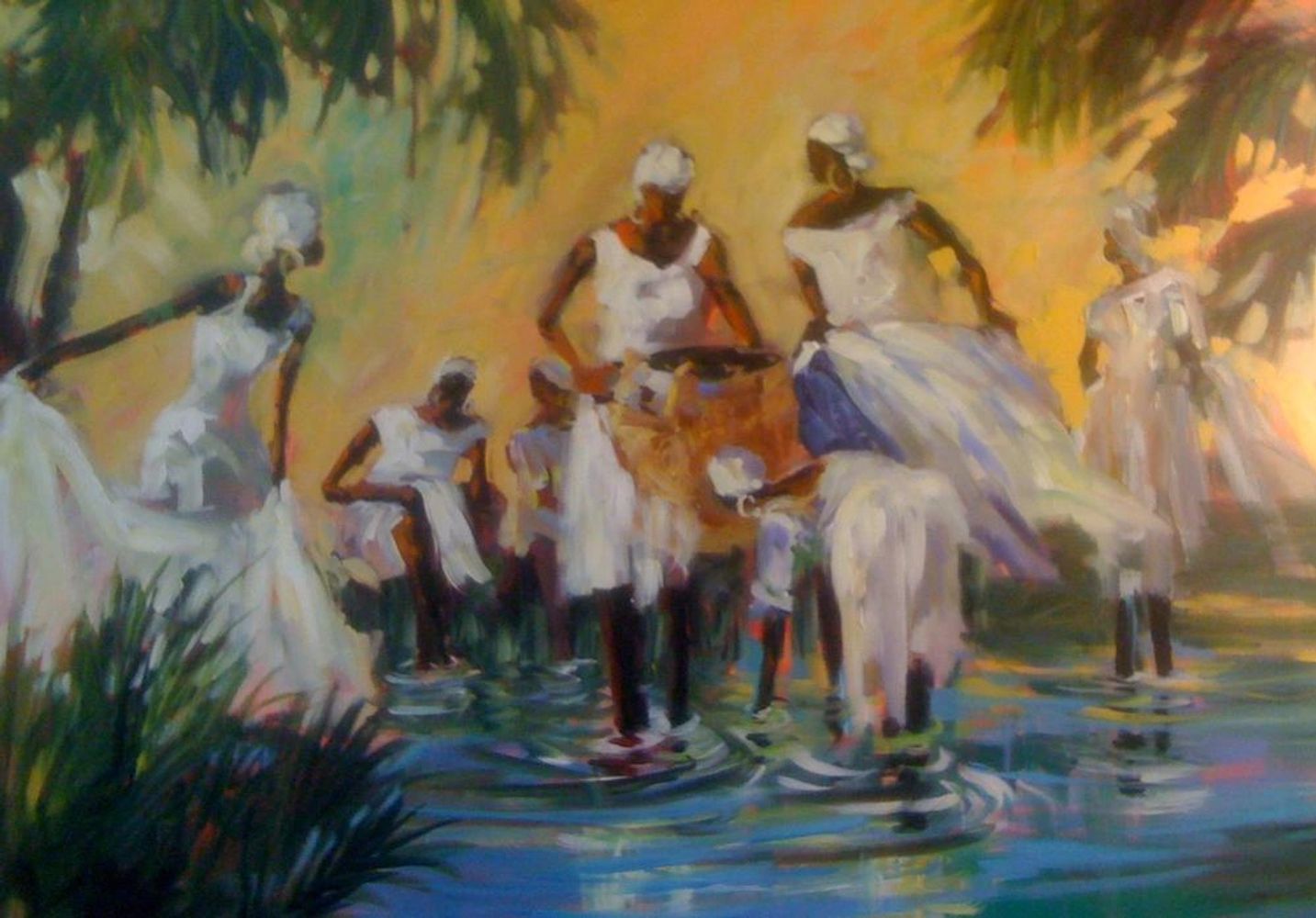 One day, I decided to try acrylics, and I felt absolutely liberated by the strong colors and ability to layer thick textures of paint! My paintings have a strong tropical feel and are alive with strong, vibrant color. I have been exploring, teaching, and motivating others to enjoy the freedom of acrylics!
